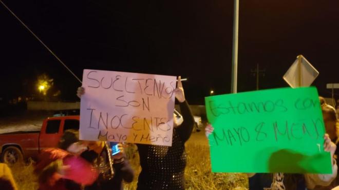 Con bloqueo carretero, familiares exigen liberar a detenidos del caso LeBarón