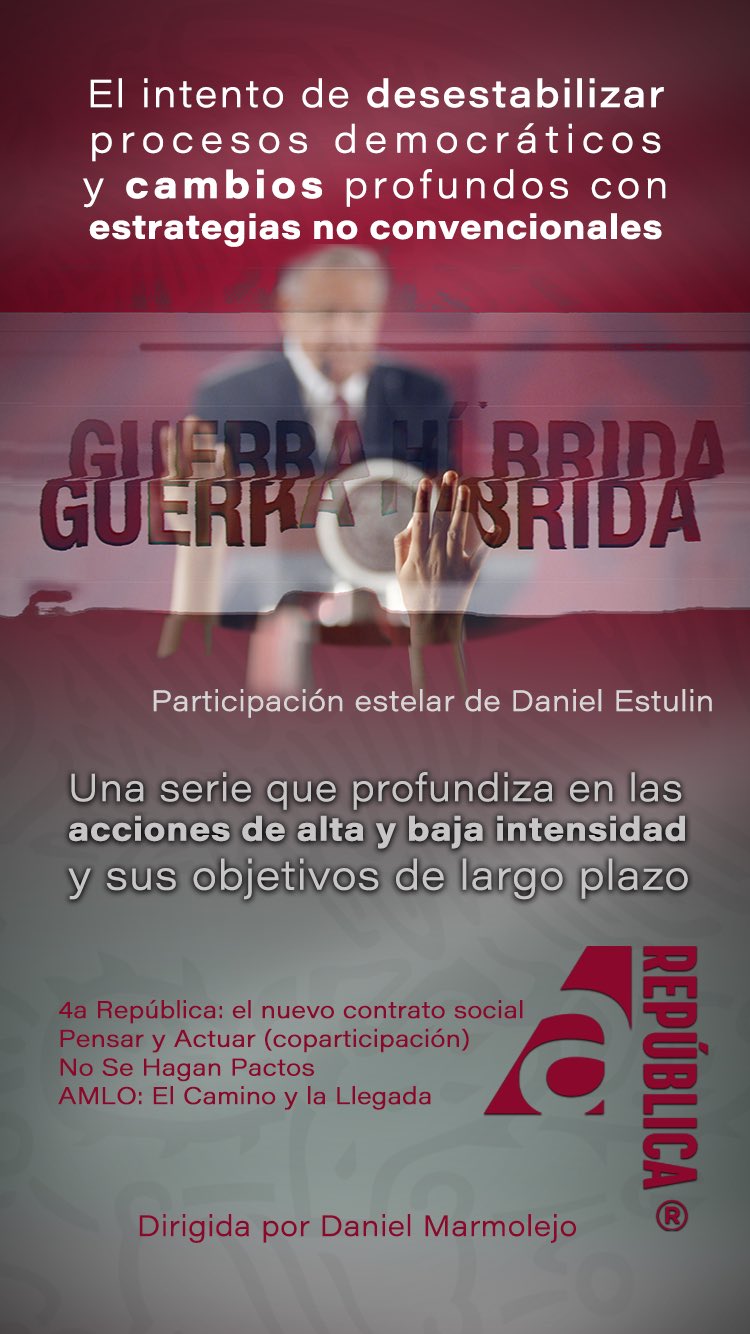 Noticias MX.- La tarde de este miércoles, el documentalista Daniel Marmolejo presentó la serie titulada, Guerra Híbrida, de la casa productora, La Cuarta República; con el que según dijo, pretende revelar lo que ocurre en la base del poder mexicano, es decir, la 4T.