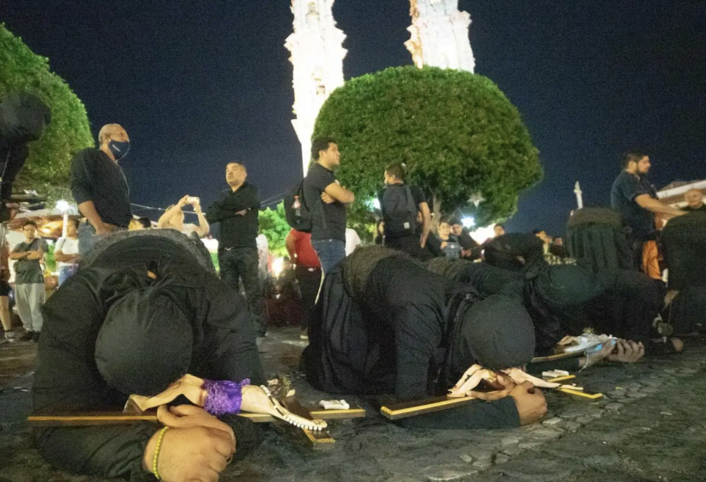 Los flagelados continúan apareciendo. Son habitantes de Taxco que año con año, por fe o manda, se provocan heridas en la espalda con una cuerda blanca que en su punta lleva clavos.