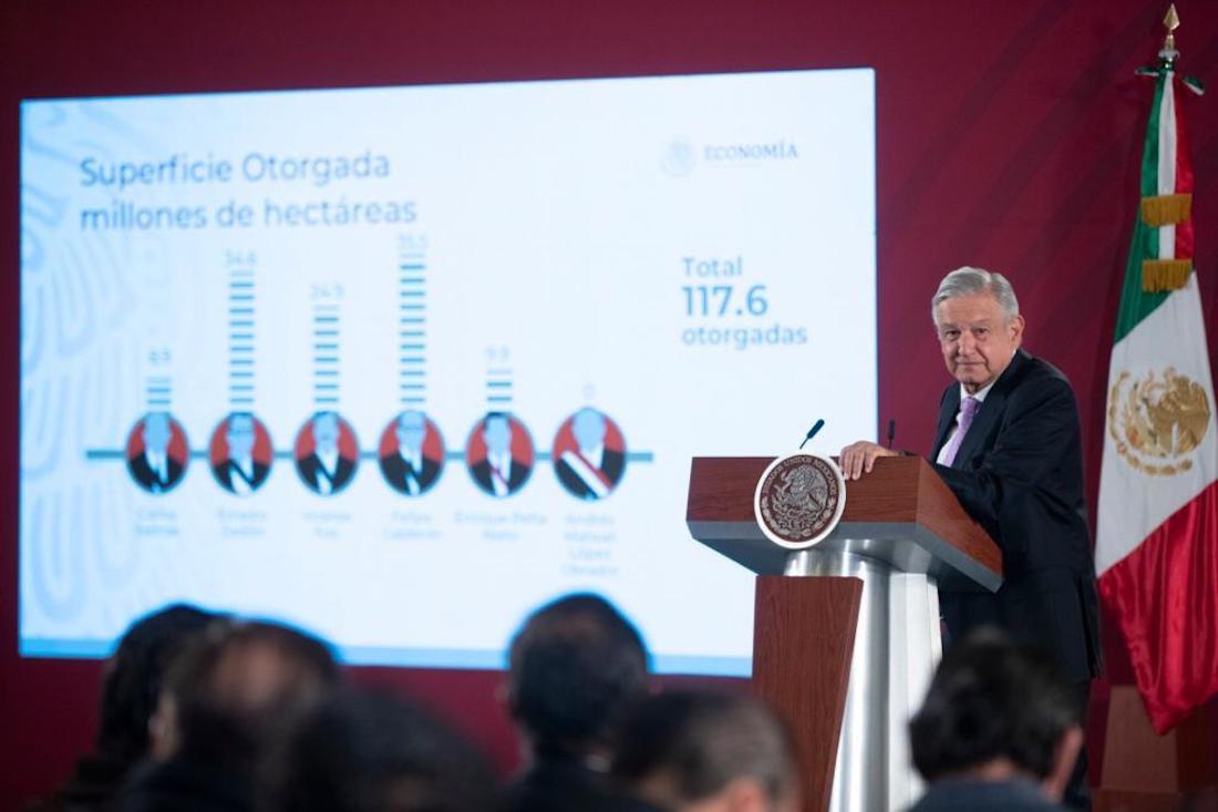 El jefe del Ejecutivo aseveró que, durante 36 años de dicho periodo, los bienes del Estado fueron privatizados para quitárselos al pueblo. De acuerdo con gráficas presentadas durante la conferencia, en el gobierno de Carlos Salinas se entregaron 17 mil 267 concesiones mineras; 11 mil 524 en el gobierno de Ernesto Zedillo; 15 mil 753 en el de Vicente Fox; 12 mil 864 en el de Felipe Calderón, 5 mil 396 en el de Enrique Peña; y ninguna en lo que va de la administración de López Obrador.