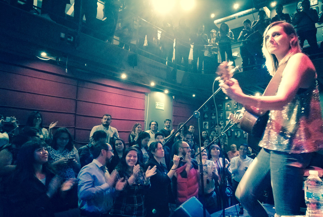 La cita fue el Foro Del Tejedor, dentro de El Péndulo (La Roma). A las 21:30 horas del sábado 4 de mayo, la intérprete descendió del segundo nivel del recinto y se dirigió al escenario, mientras era recibida entre gritos y aplausos. Tomó su guitarra y comenzaron las primeras notas.