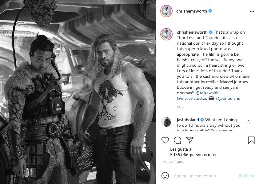 Por medio de una fotografía compartida en su cuenta oficial de Instagram, Hemsworth reveló que las grabaciones en esta nueva cinta han llegado a su fin. Este fue el mensaje que se compartió: