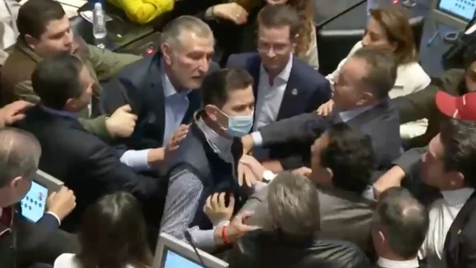 La periodista Leticia Robles de la Rosa compartió un video en redes sociales donde se observa cómo el morenista intentó golpear al panista, mientras que otros legisladores, como Luis Fernando Salazar, también intentaron involucrarse en la pelea.