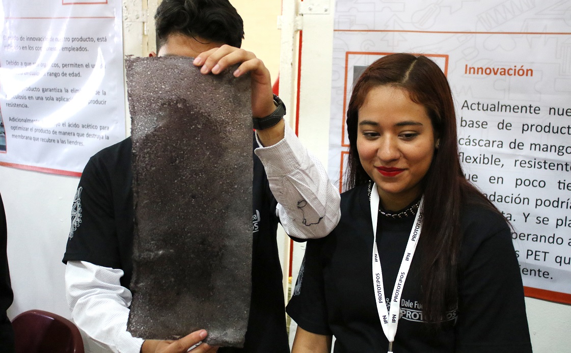 Con el conocimiento adquirido en las aulas de este plantel, Karla Guadalupe Gámez Rangel y Mario Isaac Hernández Hernández utilizaron carbohidratos, proteínas, celulosa, cáscara de mango, fécula de maíz y glicerina, para crear un biopolímero.