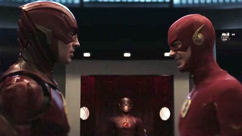 En el último capítulo el Flash de Grant Gustin es perseguido por el Anti-Monitory por lo que termina en un recuerdo dentro de STAR Labs, donde se encuentra cara a cara con el Flash de Ezra Miller quien sorprendido por la sencillez del traje de Gustin, le pregunta si es un cosplayer y si quiere una selfie.