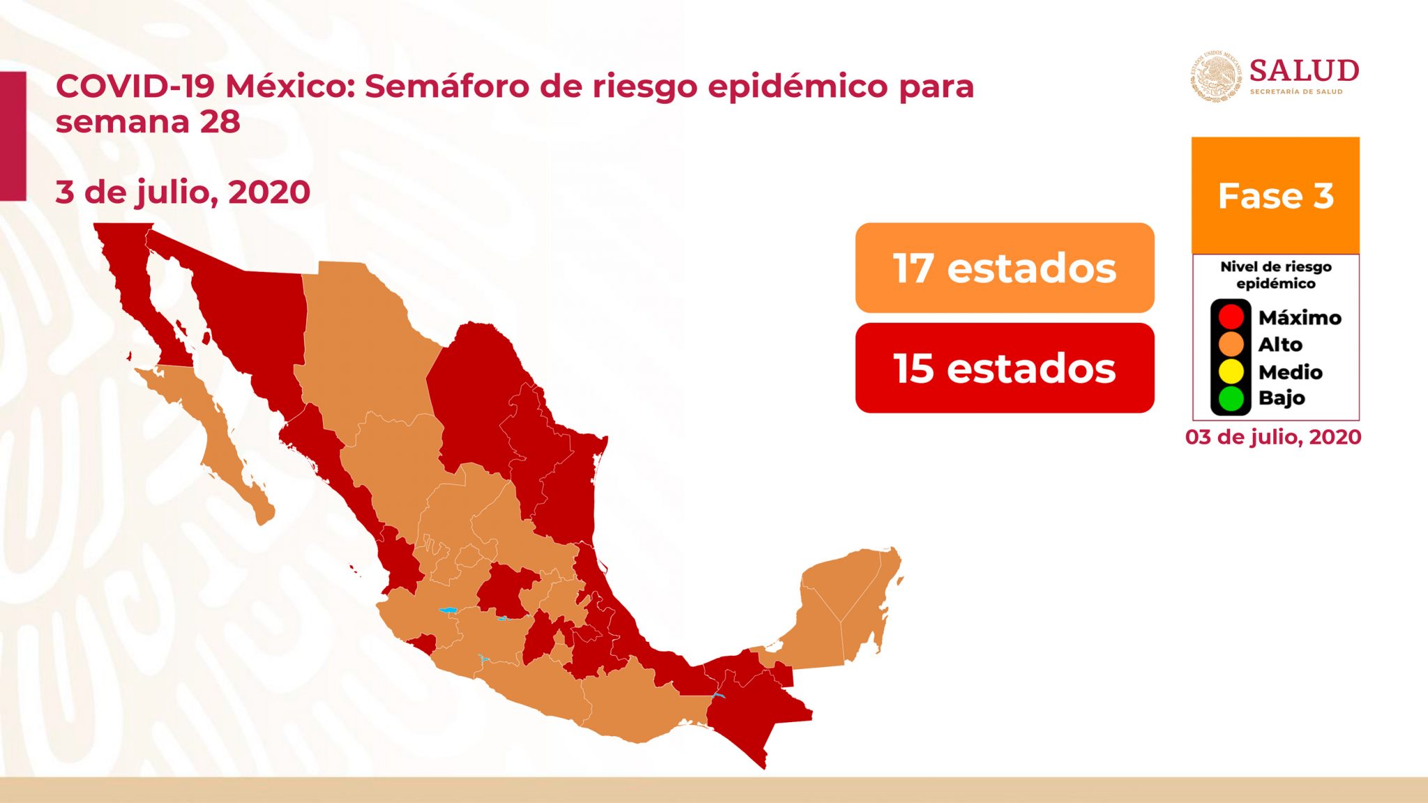 MÉXICO.– Esta mañana Hugo López-Gatell, subsecretario de Salud, informó que cuatro estados más brincaron a semáforo naranja por lo que podrán reanudar de manera gradual las actividades no esenciales.