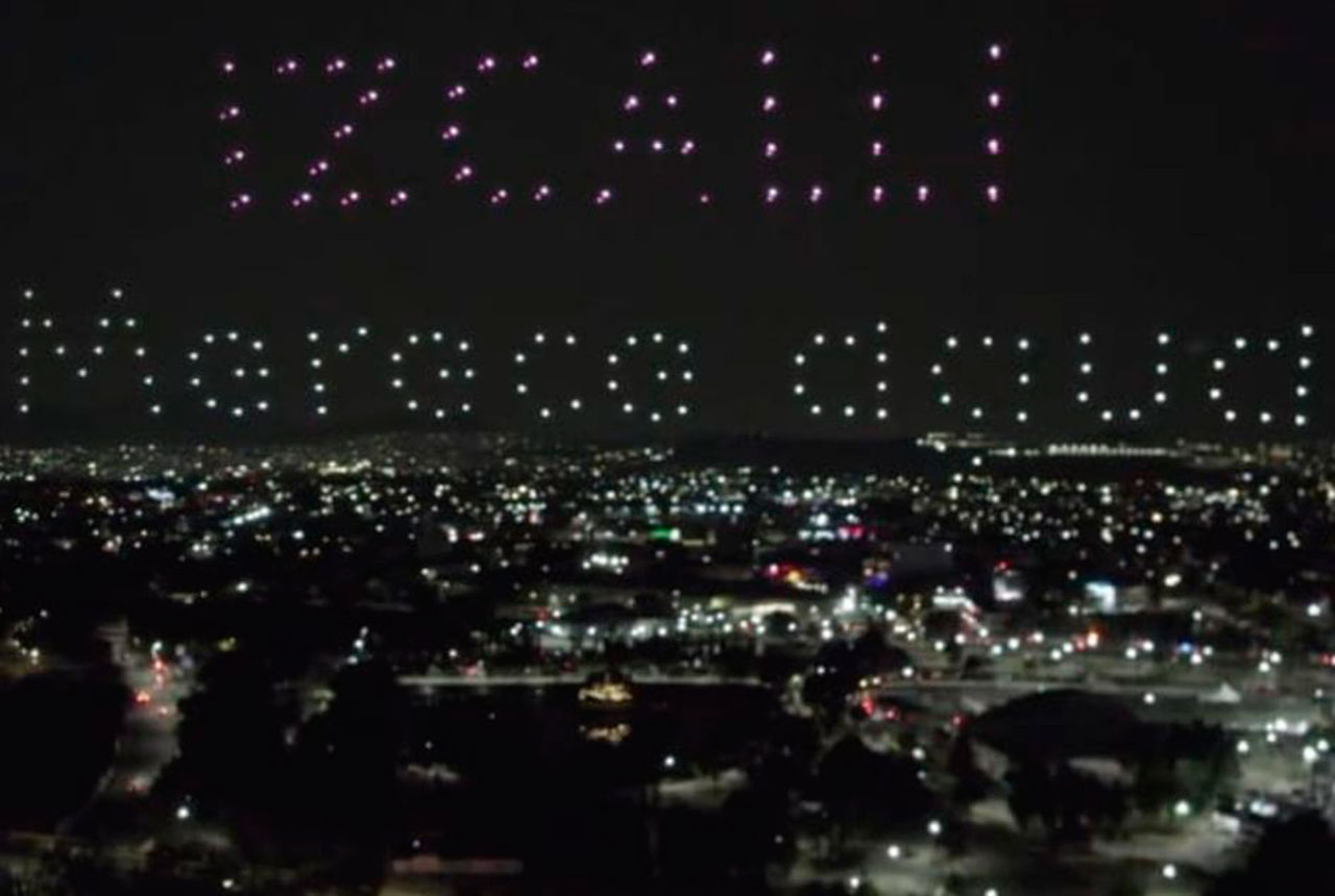 En tanto, en el cielo, los drones señalaban en el cielo las carencias en el municipio, formando frases como “No más insguridad”, “No más baches en Izcalli”, “Izcalli merece agua” y “Llegó la hora de la 4T”.