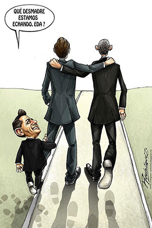 Justin Trudeau, Barack Obama y Peña Nieto, dieron a los mexicanos una extraordinaria vergüenza. La pena ajena repiqueteaba en nuestros cerebros con clichés de señoras pedorronas de los 80: “Me quieeeero moriiiir” “Tráaagame tieeeerra”. Para resumir las decenas de memes y geniales dibujos de los cartonistas de los diarios, sobresale éste del artista don Antonio Rodríguez: