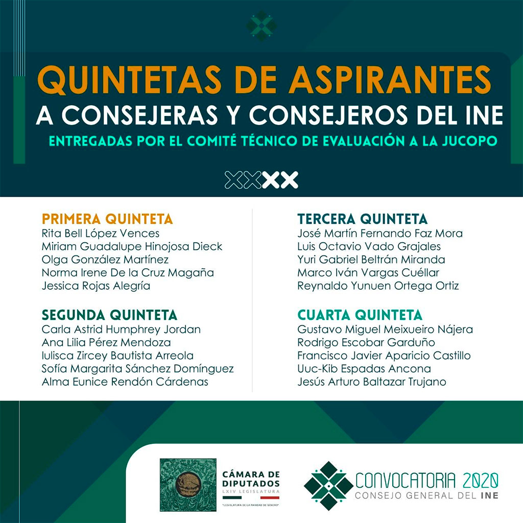 Reiteramos que, en todo momento, nuestra determinación fue la de honrar la invitación de la que fuimos objeto y nuestro propósito el de integrar cuatro quintetas con las y los mejores candidatos a ocupar un lugar en el Consejo General del Instituto Nacional Electoral, una de las instituciones baluarte de nuestra frágil democracia, producto de décadas de luchas por hacer de México un país más libre, justo e igualitario. Toda la información del proceso, incluyendo las sesiones filmadas de las entrevistas se puede consultar en el micrositio: