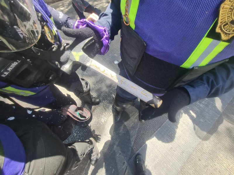 A varias de las encapuchadas se les decomisaron, palos, mazos, bats, martillos y todo objeto que fuera punzo cortante o que pudiera afectar la integridad de alguna persona en la marcha, así como evitar destrozos durante su recorrido hacia el Zócalo.