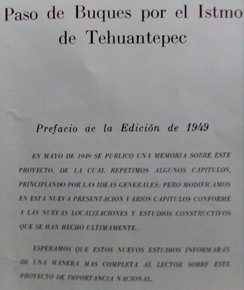Contrario al Proyecto ‘Paso de Buques por el Istmo de Tehuantepec’ del Ing. Modesto C. Rolland, patrocinado por Puertos Libres Mexicanos en 1949, el paso de buques por el Istmo de Tehuantepec es lo más apropiado; pero por la inconveniencia de un canal que requiere ´’una inversión fuera de nuestras posibilidades’, es preferible la construcción de diez vías para transportar, de un mar a otro, buques hasta de 25 mil toneladas por el Istmo de Tehuantepec,