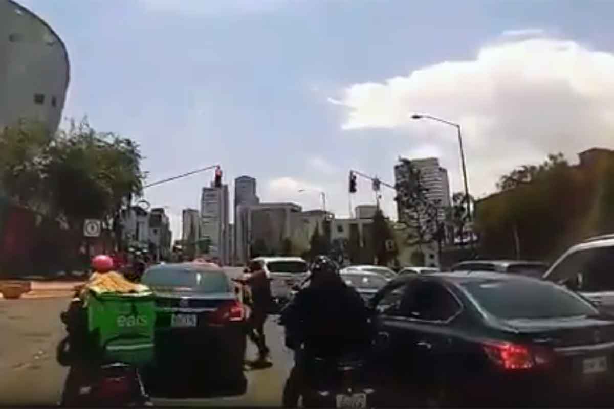 CIUDAD DE MÉXICO, 12 de abril (AlMomentoMX).— Cuatro motociclistas fueron captados cuando asaltaban a un automovilista en Santa Fe. Dos de los presuntos ladrones traían una mochila como las que utiliza la empresa Uber Eats para repartir comida.