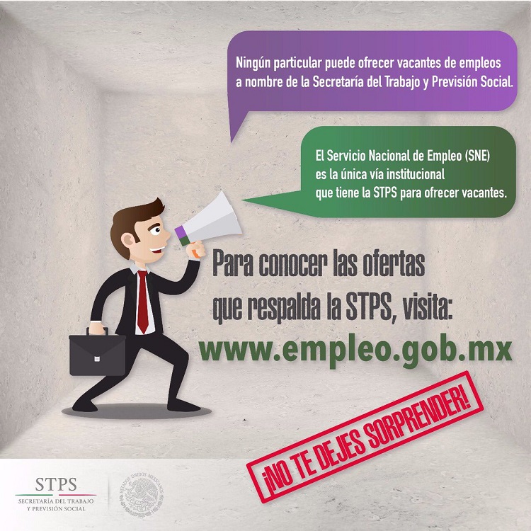 CIUDAD DE MÉXICO, 18 de septiembre (AlmomentoMX).- La Secretaría del Trabajo y Previsión Social (STPS), informa que derivado del fraude a 100 personas de diferentes estados del País, que recibieron ofertas falsas de empleo, se presentó una denuncia ante la Unidad de Investigación Cibernética y Operaciones Tecnológicas de la Procuraduría General de la República, contra quien resulte responsable por el uso de la página: https://www.facebook.com/inmigracanada/, y de la supuesta empresa Inmigra Canadá S.A. de C.V. que ofertan empleo y vende visas falsas para trabajar en Canadá.