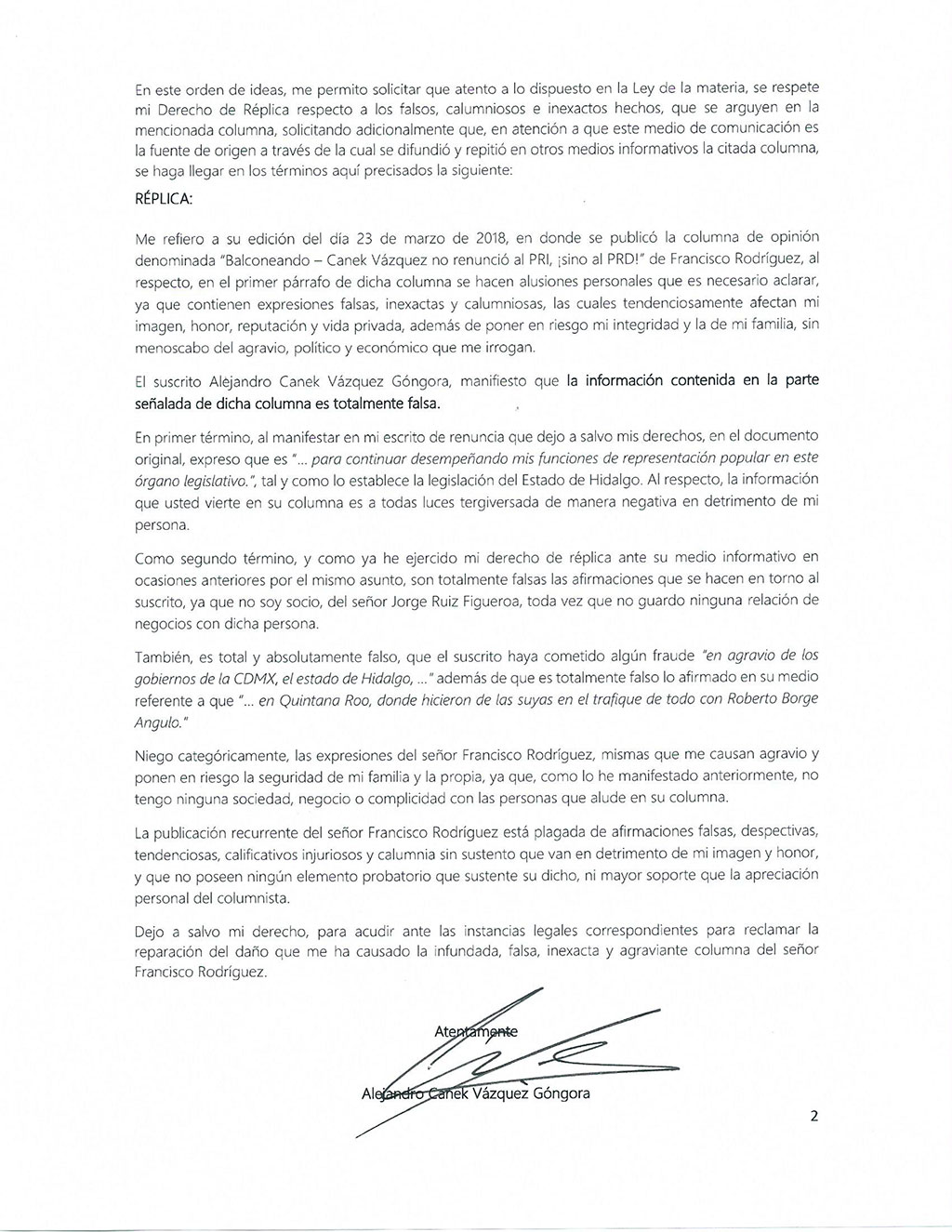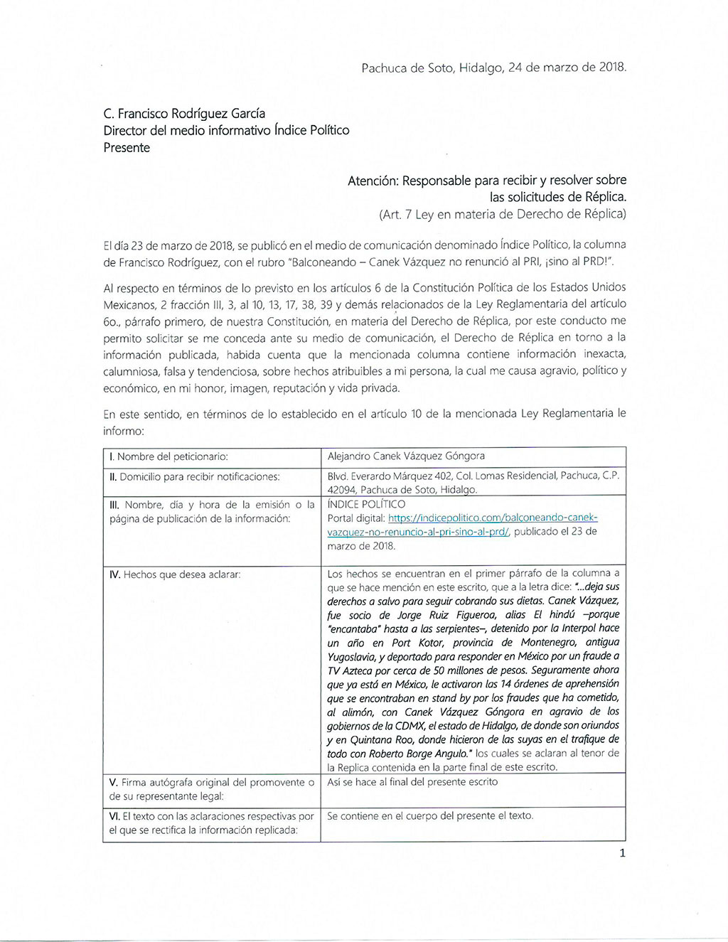 Derecho de réplica Índice Político