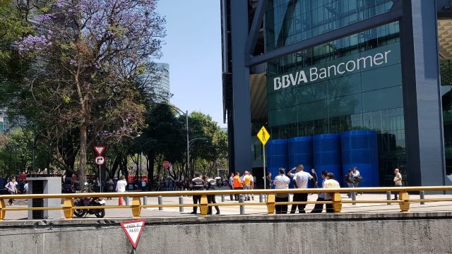 CIUDAD DE MÉXICO, 13 de marzo (AlMomentoMX).— La torre BBVA Bancomer, ubicada en Paseo de la Reforma, y sus instalaciones en Mariano Escobedo fueron desalojados este miércoles por supuestas amenazas de bombas.