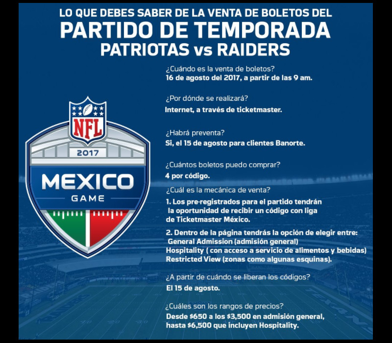 Boletos para Patriots vs Raiders en el Azteca, a partir del 16 de agosto