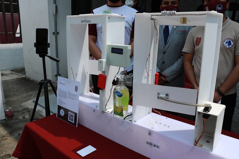 Imelda Alejandra Hernández Velasco, Miguel Ángel Neri Rosales. Luis Antonio Torralba Yebra y Adrián García Pereida, junto con Erick Nieto Martínez y Leonardo Enrique Rivera Zacarías, los dos últimos, integrantes del Club de Electrónica y Automatización (CEyA), de la Sección Estudiantil ISA CECyT 3, explicaron que, una vez identificada la persona, el sistema le pedirá que acerque las manos al despachador de gel, luego verificará su temperatura y comprobará la portación correcta del cubrebocas.