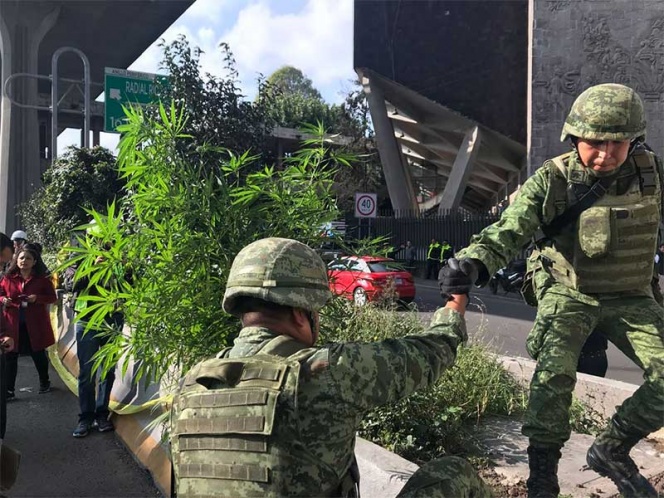 Descubren plantío de marihuana en jardineras de Periférico Norte