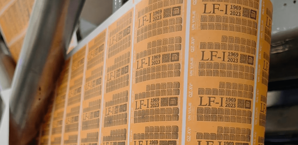 Los boletos, en color naranja, tienen las letras M, con la tipografía del logotipo del Metro, así como los años 1969-2023.