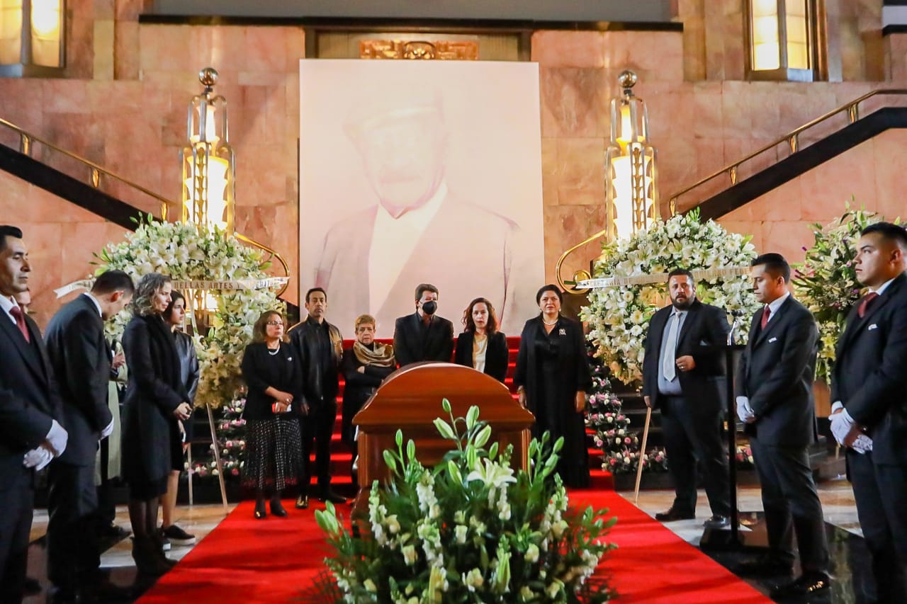 Durante la ceremonia, que se llevó a cabo al interior del Palacio de Bellas Artes, la secretaria de Cultura federal, Alejandra Frausto Guerrero, dio el pésame a la familia, a la que agradeció el que se realizara este homenaje.
