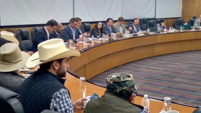 La diputada Presidenta , y el Presidente de la Jucopo Mario Delgado, así como los Coordinadores de las bancadas, dialogan y atienden en estos momentos a los representantes de organizaciones campesinas que se manifiestan en petición de mayores recursos para el campo.