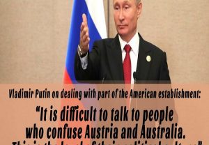 Ciudad de México, 06 de septiembre (AlmomentoMX). – El presidente de Rusia, Vladímir Putin, ha declarado que “resulta difícil dialogar con un país que confunde Austria con Australia”, en referencia a EE.UU. y a las posibilidades de cooperación con este país.