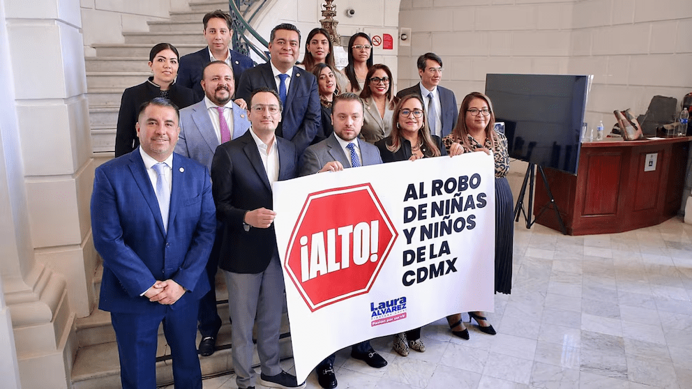 Con pancartas que decían “¡Alto! Al robo de niños y niñas de la CDMX”, los legisladores del PAN respaldaron la iniciativa, haciendo un llamado a reducir las estadísticas de desapariciones y a que esta propuesta se convierta en ley, incorporándose a la Constitución local.