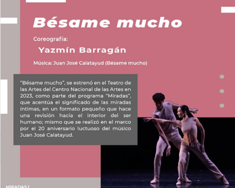 Pero Bésame Mucho también es danza. Yazmín Barragán, bailarina clásica, coreógrafa, docente e intérprete, egresada de la Escuela Nacional de Danza Clásica y Contemporánea (ENDCC) del Instituto Nacional de Bellas Artes y Literatura (INBAL) creó una coreografía dancística con la icónica canción.