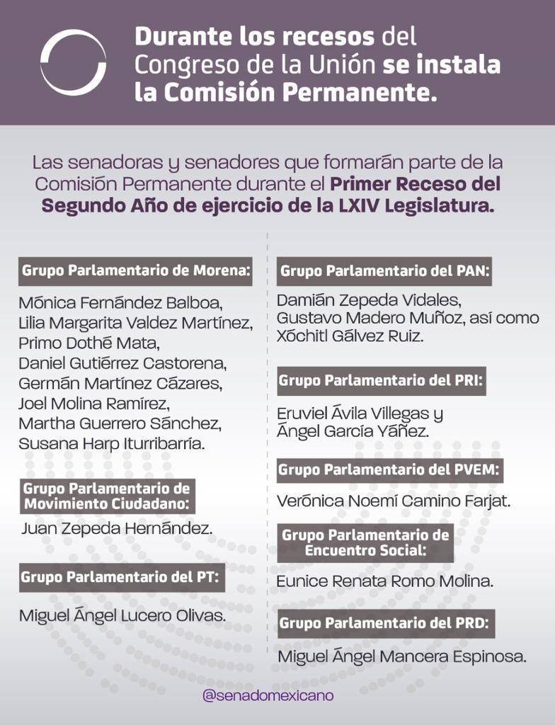 Durante los recesos del Congreso de la Unión se instala la Comisión Permanente