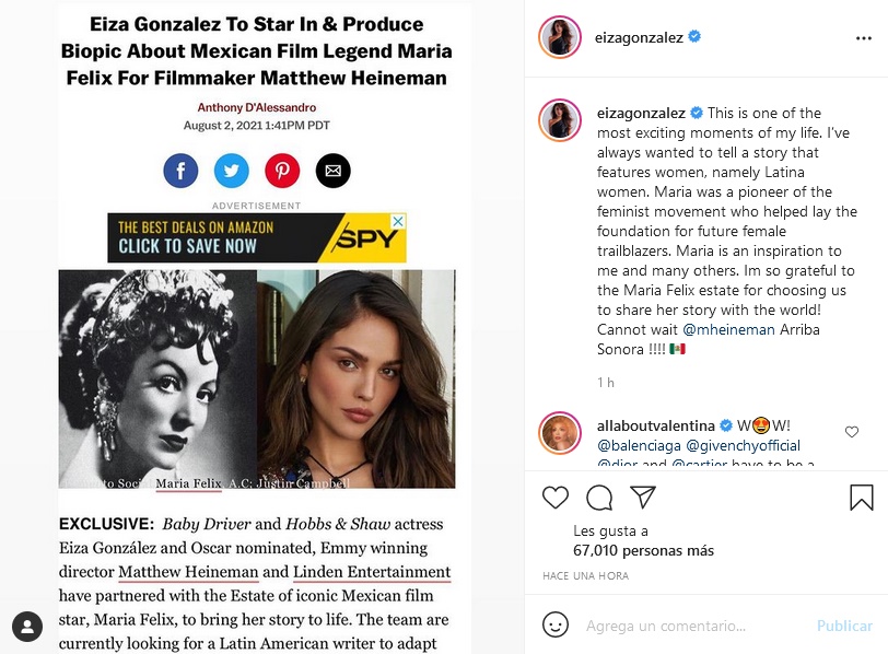 Después de que se diera a conocer la noticia, Eiza hizo una publicación en Instagram expresando la emoción que vive con esta nueva aventura.