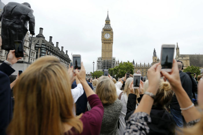 Para despedirse, más de un millar de personas se concentraron a las 12:00 horas local frente al palacio de Westminster, sede del parlamento británico, para escuchar sus últimos tañidos.