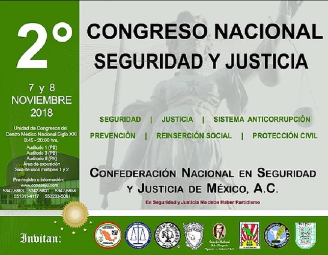 CIUDAD DE MÉXICO, 11 de octubre (AlmomentoMX).-El próximo 7 y 8 de noviembre se llevará a cabo el 2o. Congreso nacional de Seguridad y Justicia organizado por la Confederación Nacional de Seguridad y Justicia de México, A.C. en la Unidad de Congresos del Centro Médico nacional Siglo XXI, con la participación de expertos en la materia.