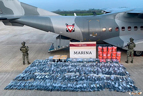 La SEMAR informó que “se mantiene a cargo de la guarda y custodia del inmueble en cuestión, toda vez que la autoridad competente realiza las pruebas periciales, pesaje y demás diligencias correspondientes.” Además, se continúa con labores de inteligencia para conocer la ruta que siguió el grupo que almacenó las armas y establecer el origen de las mismas.
