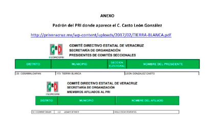 Casto León es un viejo priísta y panista, camaleónico y chapulín que asegura tener el apoyo del Dirigente Estatal de la CROC, Antonino Baxzin Mata y del Nacional, Isaías González, pero en realidad se rumora sería propuesta del dirigente de Antorcha Campesina, Samuel Aguirre Ochoa quien es candidato a Diputado Federal plurinominal del PRI y forma parte del Comité de Antorcha en Tierra Blanca como segundo a bordo de Humberto Aguirre Ochoa en la zona de Jícaro y Barahúnda.