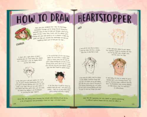 “Este libro ha sido un trabajo muy arduo y que realmente me sacó de mi zona de confort como artista… Las personas que han seguido mi viaje artístico sabrán que siempre he encontrado el arte a todo color como un DESAFÍO y este libro necesitaba muchas nuevas piezas de color ¡Pero estoy TAN feliz de cómo resultó todo! Estoy especialmente emocionada de que veas la sección ‘Arte de Heartstopper’ del libro, que te lleva a través de la progresión de mi arte de Heartstopper desde 2013 hasta ahora… cuánto tiempo ha pasado”