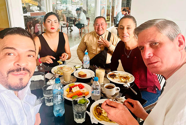 Arrancando la semana llega nuevamente una fotografía que enciende las redes sociales, en la misma, se logra ver a la Coordinadora Nacional de los Comités de Defensa de la Cuarta Transformación, Claudia Sheinbaum Pardo, junto a su pareja sentimental, Jesús María Tarriba Unger -analista de riesgos económicos en el Banco de México-, a su lado el personal de mayor cercanía con la hoy precandidata presidencial, y el orquestador de la fotografía, Juan Javier Gómez Cazarín, desayunando en Veracruz, en una de sus recientes visitas a la entidad. https://twitter.com/JJavierGomezCa1/status/1703782962876063815