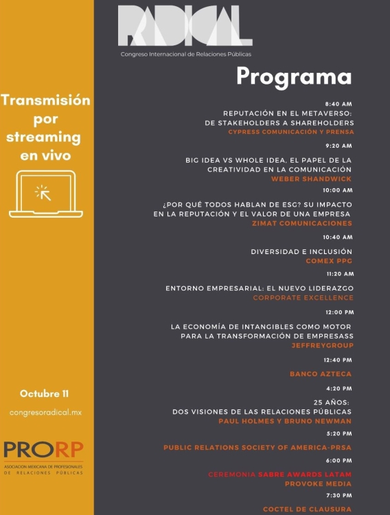 Redacción MX Político.– Regresa el Congreso Internacional de Relaciones Públicas RADICAL, evento que será en formato híbrido.