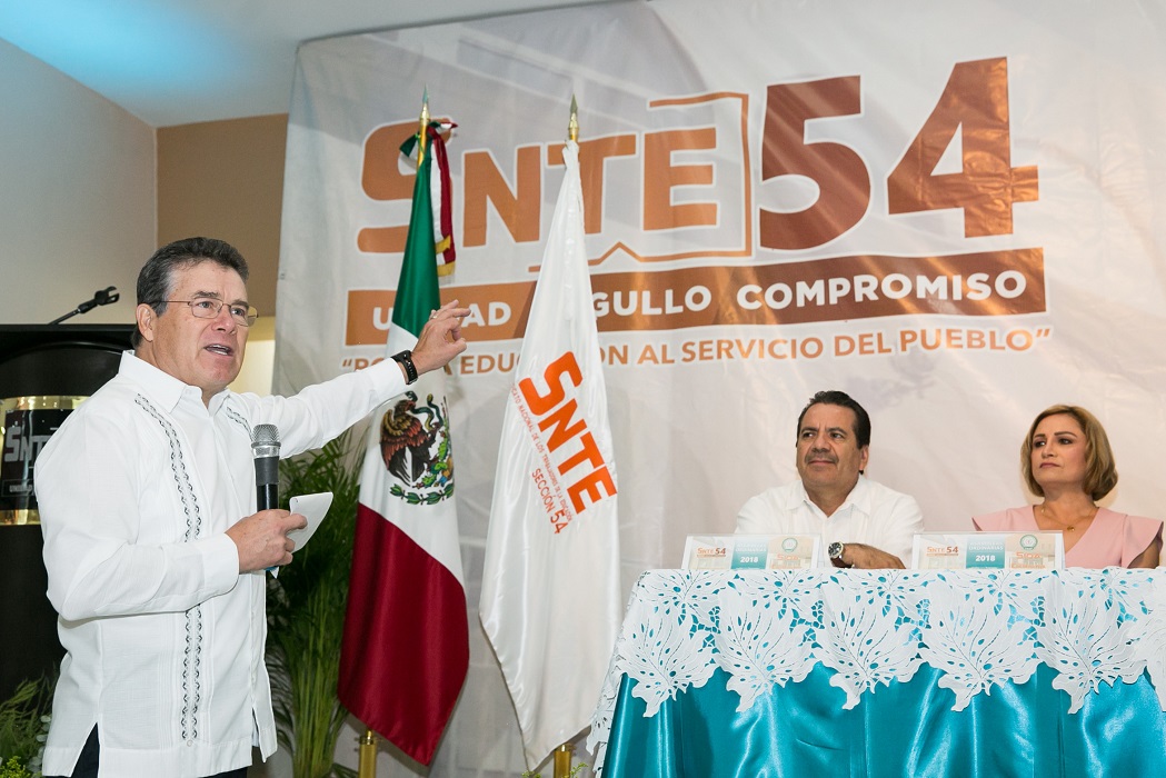 En representación de la gobernadora Claudia Pavlovich Arellano, acudió José Víctor Guerrero González, encargado de despacho de la Secretaría de Educación y Cultura del estado, quien expresó toda la confianza y respaldo a los maestros de la entidad.