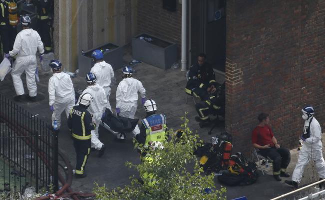 Ambulancias y vehículos de bomberos llenaron las calles en torno al edificio, que se encuentra en un barrio de clase trabajadora en Londres. La gente que vivía cerca fue evacuada, algunos con sus mascotas en brazos al marcharse. Varios voluntarios repartían botellas de agua.