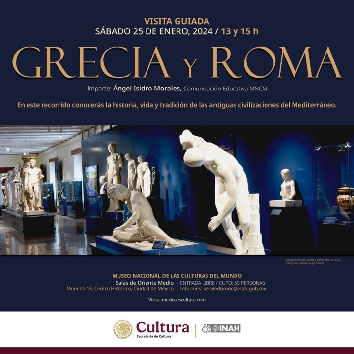 El sábado 25 de enero, a las 13:00 y 15:00 horas, el Museo Nacional de las Culturas del Mundo realizará la visita guiada “Grecia y Roma”