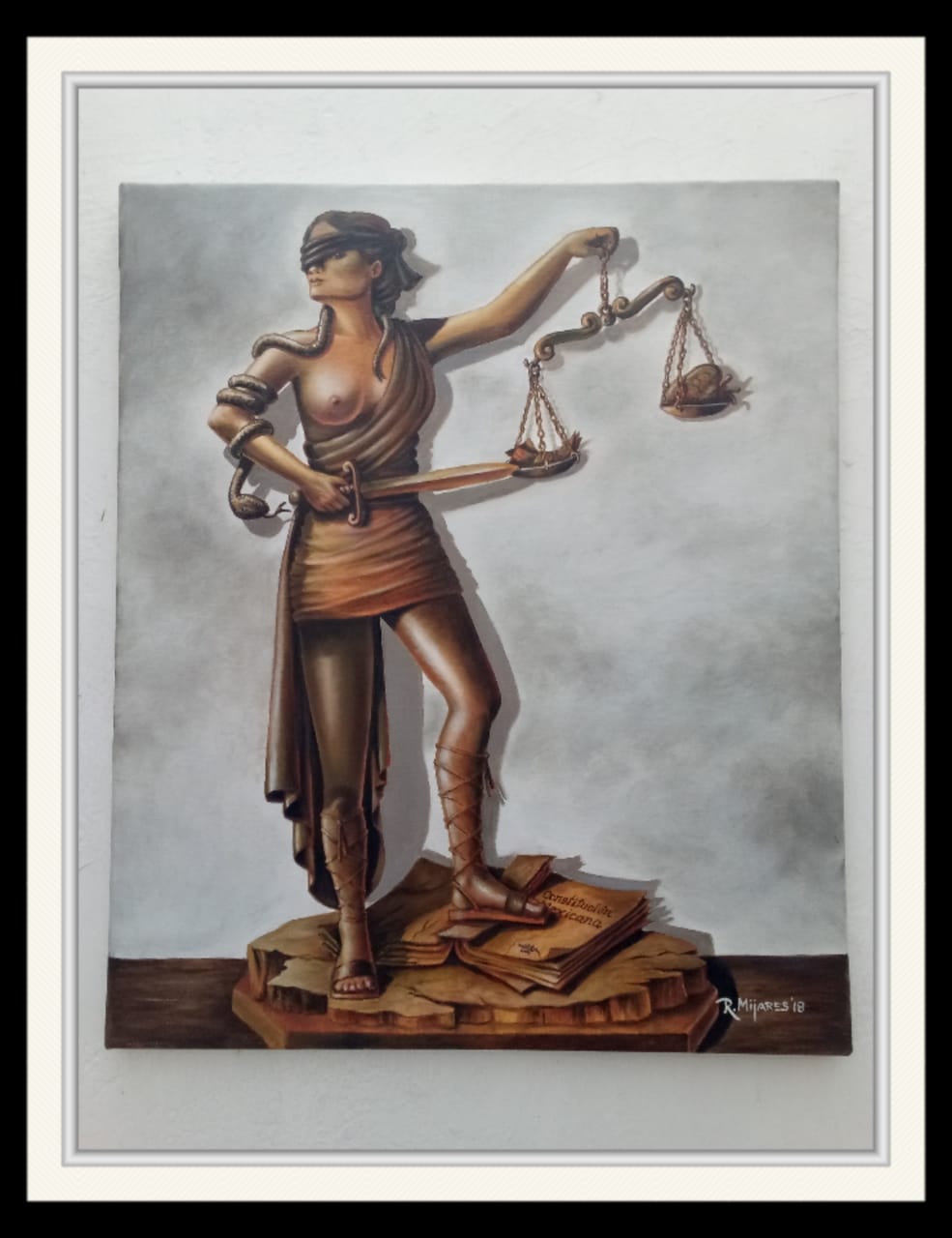 Una pintura de Rocío Mijares representa a Nefas que, según el abogado Alberto Woolrich, es la justicia prostituida.