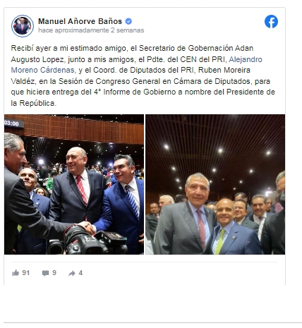 “No es ruptura. Yo hablo a título personal, pero la mayoría de los senadores apoyamos a Alejandro Moreno Cárdenas, que no quede la menor duda. Si hay diferencias de algunos senadores con el presidente del partido es a título personal, no es a título del grupo”, dijo Añorve, el cual -junto a Beatriz Paredes, Claudia Anaya y Mario Zamora- respaldó a Alito en la Plenaria del PRI en Yucatán a la que intentó boicotear Osorio Chong.