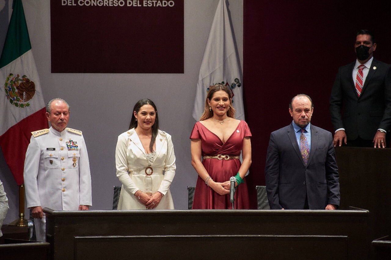 La nueva gobernadora no perdió oportunidad para decir que recibe un estado en ruinas, en referencia a la crisis financiera y de inseguridad por la que atraviesa Colima desde hace dos sexenios.