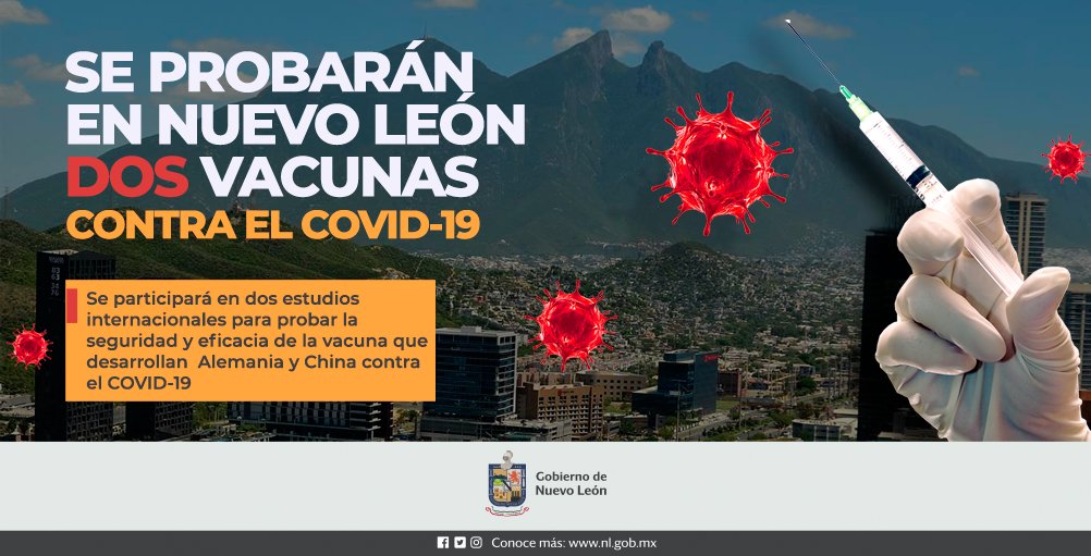 En Nuevo León se probarán dos vacunas contra en Covid-19