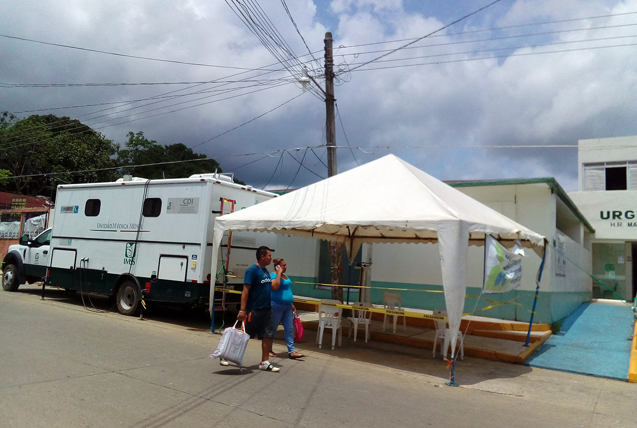 — El Hospital de Campo y su capacidad instalada de atención reducida al tener montado a la Clinica IMSS nivel 1, ambos solo cuentan con un Módulo para atender casos de 7 municipios y de acuerdo a los síntomas que presenten o es un aismaliento en su domicilio o enviarlos a donde quieran recibirlos; si es que no mueren antes, como ha sucedido.