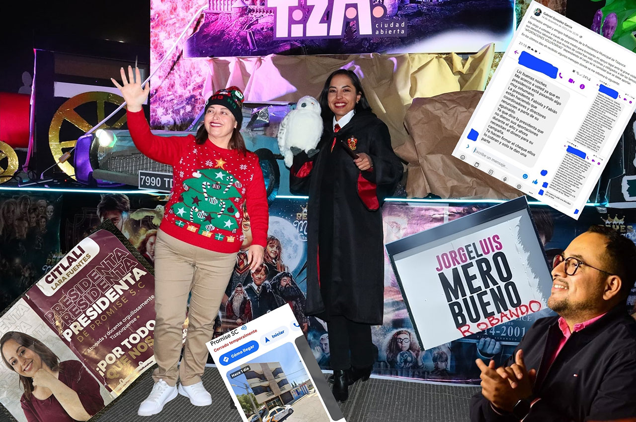 *  Gabriel González García, Síndico Jurídico del Ayuntamiento de Tizayuca, recibió de empleados municipales diversas denuncias por la aplicación de “moches voluntarios” que se les aplicó por indicaciones de la alcaldesa a sus aguinaldos, para  apoyar su proselitismo y el de sus allegados; la Secretaria Municipal, Citlali Lara, por ejemplo, regaló en la pasada temporada navideña cientos de piernas y pollos, acompañados de un tríptico, donde se ubica como presidenta de una inexistente asociación. La edil se disfrazó en el pasado festival de Día de Reyes de Harry Potter para tratar de ganar simpatías, en un desesperado intento por obtener una candidatura al Congreso de la Unión