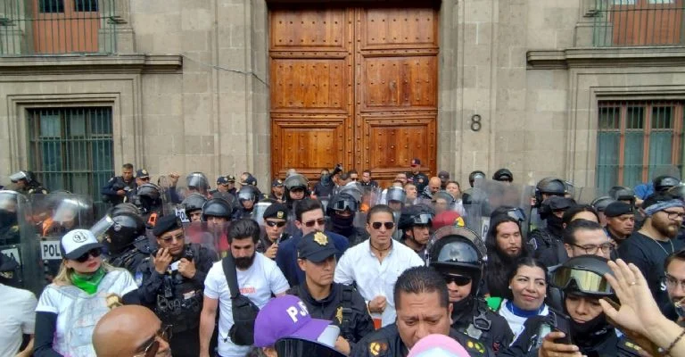 Los manifestantes, que llegaron desde tempranas horas al recinto, exigían una audiencia con Sheinbaum o algún funcionario de alto rango. Al encontrar bloqueado su acceso con vallas metálicas, los manifestantes las derribaron y las lanzaron contra los policías que custodiaban el lugar, además de arrojar botellas y agua.