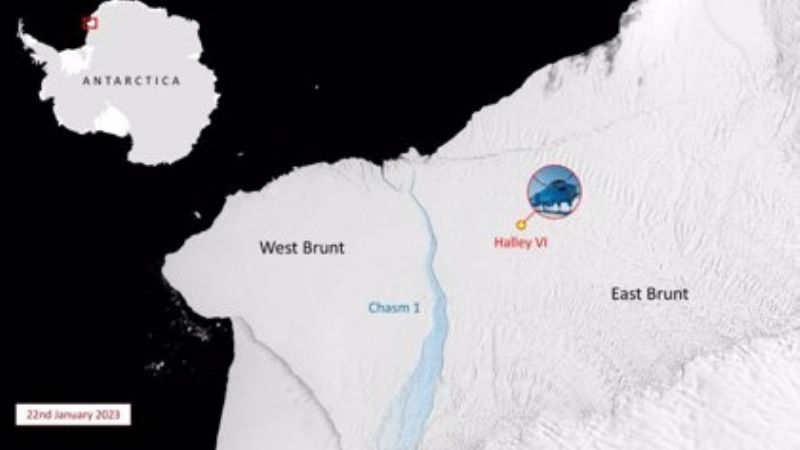 En la plataforma de hielo Brunt se encuentra la estación de investigación Halley del BAS. Los glaciólogos del BAS, que han estado observando el comportamiento de la plataforma de hielo, afirman que la zona de la plataforma de hielo en la que se encuentra la estación de investigación no se ha visto afectada por los recientes desprendimientos.