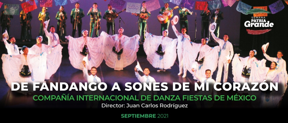 La Compañía Internacional de Danza Fiestas de México trae el evento De fandango a sones de mi corazón. Con la dirección de Juan Carlos Rodríguez, los bailarines interpretarán ritmos de huapango que llevarán al espectador a un paseo por la región Huasteca. En el repertorio se escucharán principalmente piezas tradicionales de Veracruz. De igual manera, podrán verse variados números donde sonará la mezcla de los sonidos españoles y prehispánicos presente en los sones jaliscienses.