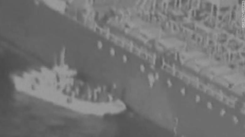 Las imágenes publicadas por el Comando Central de EE. UU. el jueves mostraron a la tripulación del USS Bainbridge ayudando a los tripulantes del Kokuka Courageous después de su rescate.